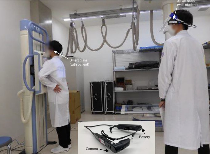 この教育コンテンツの効果を評価するため、従来の教育方式(対照群)とスマートグラスを用いた教育コンテンツでの教育方式(介入群)での教育前後の模擬OSCEを実施しました。模擬OSCE前後の評価点の差から、その教育的効果について検証しました。その結果、これまで不可能だったOSCE時の患者視点、学生視点、学生行動を客観的に観察できることが明らかになりました。ただし、スマートグラスの導入によって模擬OSCEでの高得点化につながると予想していましたが、スコアの面で有意な差は見られませんでした。スマートグラスのようなウェアラブル技術の活用は、高い教育満足度をもたらす可能性があるものの、デバイスの取り扱いや安定したネットワーク環境、画質の維持などが必要で、このコンテンツを教育現場に実装する際の課題が明らかになりました。この研究時に使っていたメガネタイプのスマートグラスは装着時の違和感があり、動きが制限されるということもわかったので、現在は、上部の動画で使用している胸もとに装着するタイプのスマートグラス2を活用した研究を進行中です。