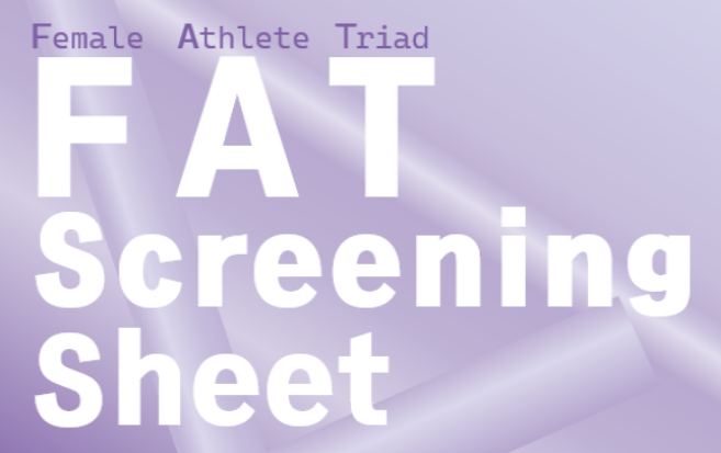 女性アスリートの身体生理的課題への理解が広がる中、女性に月経や体調について聞くことを「セクハラと受け取られるのではないか」とためらう男性指導者もいるといいます。そうした場面で活用できるのが「FATスクリーニングシート」です。FATとは女性アスリートが陥りやすい3主徴(エネルギー不足、視床下部性無月経、骨粗しょう症)のことで、28の質問に答えることでFATの危険性をセルフチェックできます。男性の先生には、『本人に話しにくい時は、このシートを渡して保健室の先生に回収や対応をお願いする、という使い方もできますよ』とアドバイスしています。